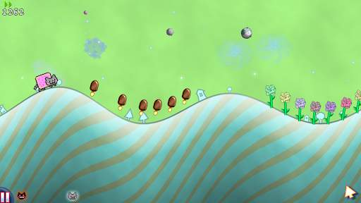 It is time for you to start your space journey with Nyan cat. You will have a really great time with your cat. Technically speaking, this is a Parkour game. But this game is unlike traditional Parkour game. In the similar Parkour games, you just lead an animation figure to run on the ground, at best, on the roof of some objects. But in this game, you will fly among the stars and over the rainbow with a cute cat. Can you imagine that? Flying over the beautiful rainbows with cute Nyan cat. This will be a really beautiful and sweet memory. You will definitely enjoy yourself a lot. If you are a skilled player in terms of Parkour games, you can perfectly handle this game. Even if you come across some problems, you can find your own way to fly over the rainbow with your cat. But the most important thing is to enjoy yourself and enjoy the wonderful and comfortable feeling of being surrounded by many, many delicious foods, shining stars and by those colorful rainbows. Maybe you once experienced all these fairy things in your dream. But in this game, all of these things will come true because each detail is so real, which means that your space-flying dream will come true in this game. And you will definitely like this unprecedented journey with the light-hearted background music. Everything here is so refreshing. So when you have nothing else to do or when you have a really blue mood, it is definitely a perfect choice for you to enjoy yourself for a while in this mysterious universe. And Nyan cat is always waiting for you. It is very simple for you to control this game. You can just guide your cat to eat food items, including donuts, milk and other delicious food to earn more scores. And if you would like to, you can try the multiplayer mode with your best friends and see who can run farther. Actually, there are several modes in this game. In each mode, you will have a totally different game experience. You will feel like that you are traveling through different worlds. The background music also varies from mode to mode. And the most exciting thing is that you will have the chance to get different power-ups in different modes. If you have enough time, it is definitely an exciting thing to explore each corner of this wonderful world. But since you are flying in the sky over those rainbows, you must be careful and pay attention to the road ahead. If you fall into the black hole located at the bottom of the screen, which will be the end of the game. So it is very important for you to keep focusing on flying from this rainbow to another rainbow and always keep jumping and running forward, which means that you cannot get distracted while you are playing this game. Your full concentration is the key for you to win. But it feels so good to cover a long distance in a short time. And it feels even better to collect gold coins. So as long as you have confidence in yourself, you can help Nyan cat discover more universes and make a new record. You can just be relaxed and give yourself the full right to enjoy the feeling of freedom. It will be a great pity for you to miss this interesting game because you will have so refreshing experience and breath-taking moments in this game. It can help you get rid of all the monotonous feelings that smothered you to boredom in your real life. Everything is so enjoyable here. And you feel like that you want to stay here forever with Nyan cat and with those wonderful food items. This is a world of fairy tale! So it is time for you to fly into the space with your cat. Of course, sometimes you may drop into the darkness. But you should never give up. Without you, how can your Nyan cat make the record on its own?