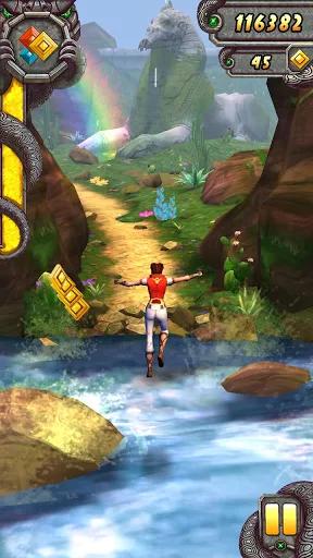 The sequel to the smash hit phenomenon that took the world by storm! Temple Run redefined mobile gaming. Now get more of the exhilarating running, jumping, turning and sliding you love in Temple Run 2! Navigate perilous cliffs, zip lines, mines and forests as you try to escape with the cursed idol. How far can you run?!